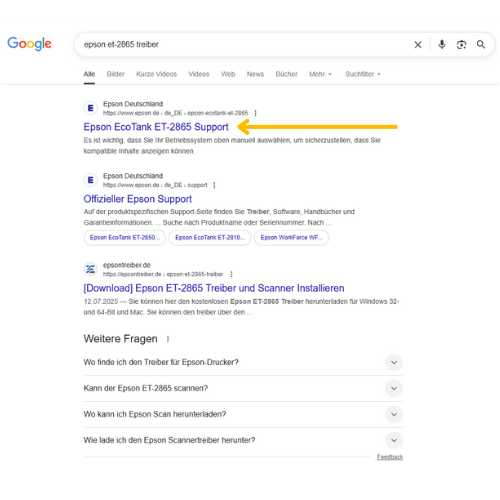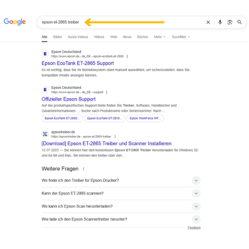 Erstens: Geben Sie „Treiber Epson ET-2865“ bei Google ein.