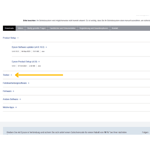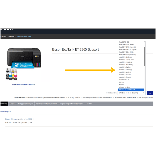 Drittens: Wählen Sie Ihr Betriebssystem aus (die Epson-Website erkennt es in der Regel automatisch).
